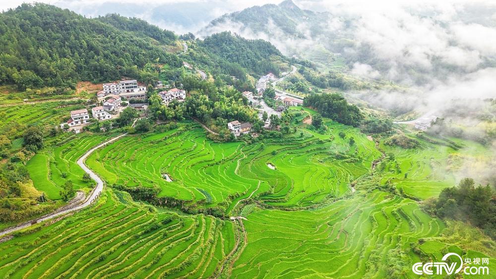 2025年8月12日,湖北黄冈,初秋晨雾下的蕲春县雾云山村,云雾笼罩梯田,山村若隐若现。